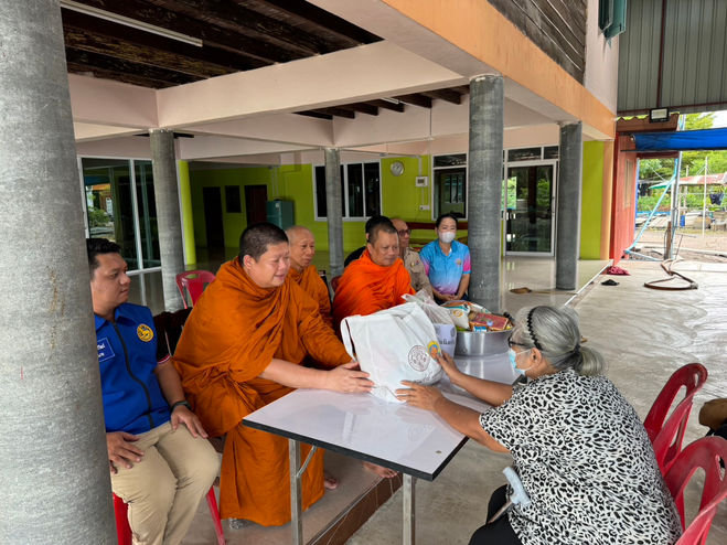 On September 21, 2023, Phra Maha Anuraksa Thirasakko, Dr. Lekha, the Provincial Governor of Samut Sakhon, Phra Khru Sakornthammarat, Dr. the Abbot of Rang Tan Nilaphradit Temple, Phra Khru Som Ananta Anando, the Abbot of Nong Bua Temple, Mr. Pirun Ratchan, the District Chief of Ban Phaeo, and their team paid a visit to offer encouragement to bedridden patients in Ward 7, Tambon Nong Bua.