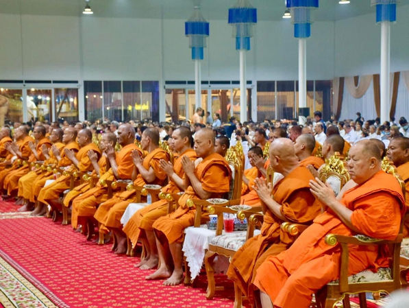 2567年3月31日,下午6点34分,具有 虔诚信仰的佛教徒们聚集一堂,共同接受祝福。